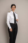 The Charlotte slim-fit pants are a mid-rise style with a flat front and tapered leg, designed for an easy fit. They are made from a top-performing woven blend of poly/wool tropical weave lightweight fabric with a touch of stretch. These pants feature a retractable waistband and are fully lined for a more flattering fit. Shown in black.