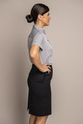 Our fully lined Mikayla dress is made to be a comfortable professional dress with an “easy to work in” feel. It features a timeless length with a back slit for maximum stepping ease.