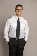 The Declan is a classic single-breasted, two-button jacket made in our top-performing woven poly/wool sharkskin fabric, with a touch of stretch. It's fully lined and available with customized crew striping, and can also be worn without stripes to accommodate other uniformed professionals. Shown in Basic Blue.