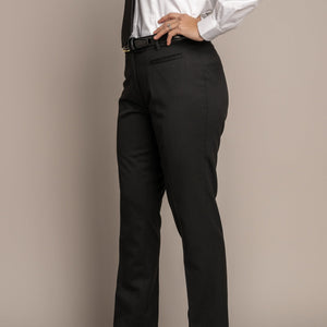 Our top-performing woven blend of wool/poly Sharkskin with a touch of stretch. This classic pair of ladies' mid-rise style flat front pants are engineered for an easy fit. Shown in Black. Mid rise...