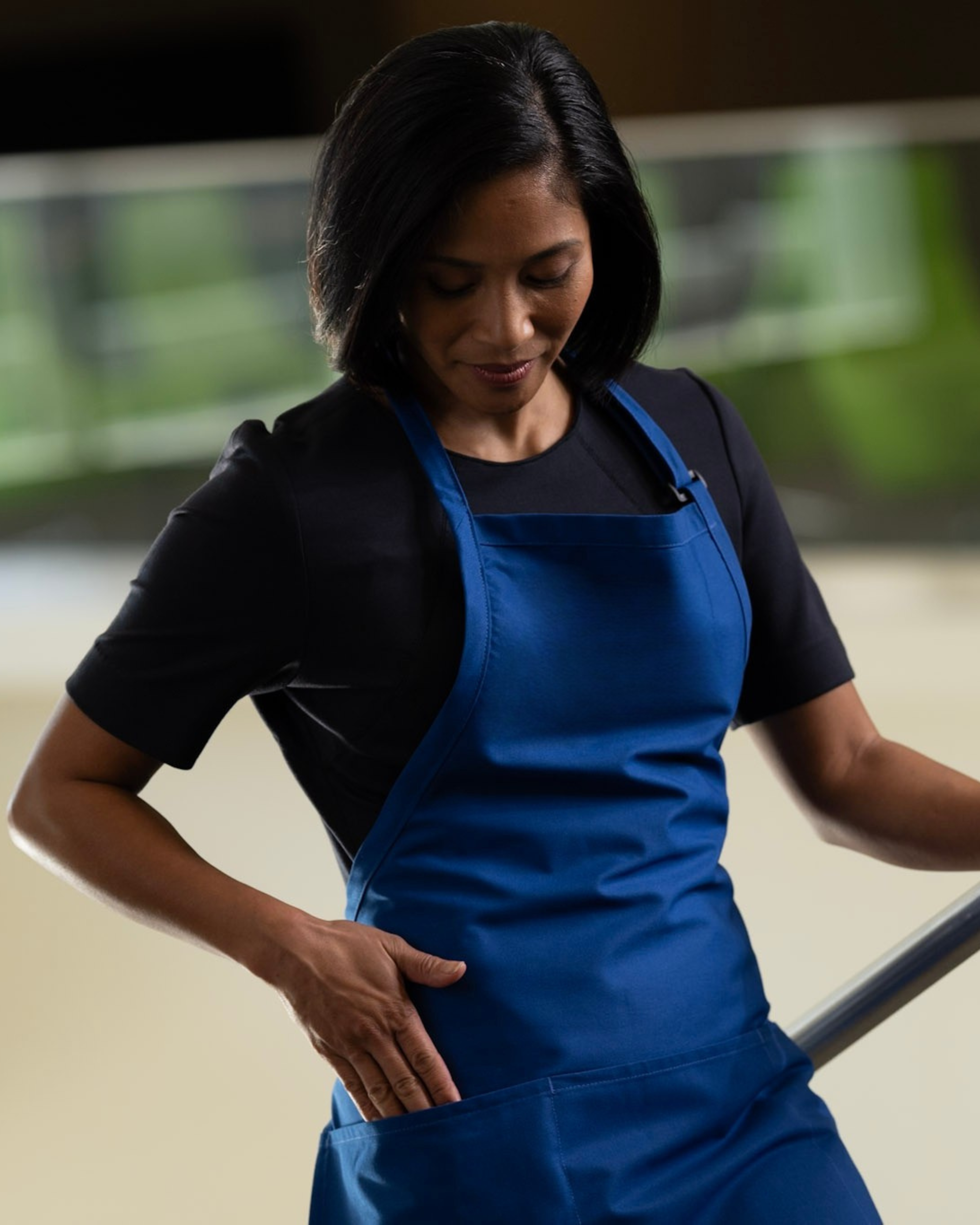 This apron has three big pockets and an adjustable neck slide for comfort. You can also add personalized embroidery to make it unique to your style. 65% Polyester/35% Cotton twill; 7...